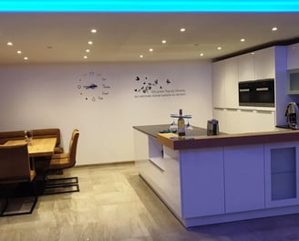 - Wohnbereich mit Sofa und Sofatisch, Fernseher, Playstation, Bücher, DVD`s