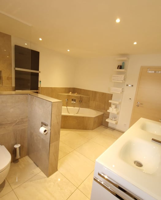 - 3 große Schlafzimmer ausgestattet mit Doppelbetten, Bettwäsche, Schrank, Fernseher